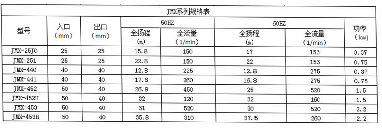 【JMX臥式耐高溫磁力泵】參數明細