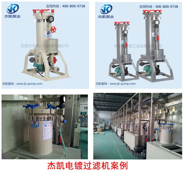 杰凱泵業作為一家專業的化學電鍍過濾機制造商,擁有16年的電鍍過濾機研發和生產經驗,杰凱過濾機過濾精密度高,一體成型濾桶,性能穩定,操作簡單,容易清洗。如您有什么需求可以直接撥打我們熱線:400-800-9738,我們準備好為你解答與服務!