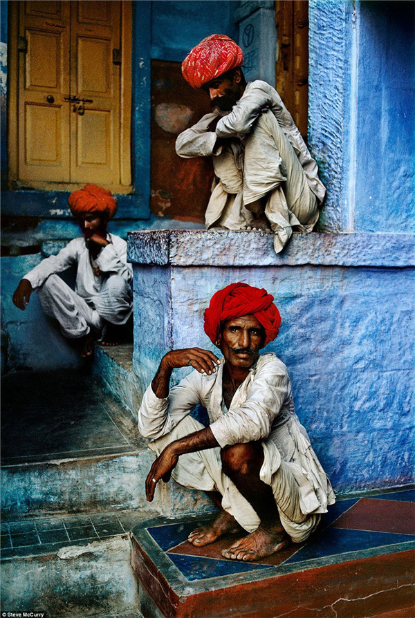 印度拉賈斯坦,三名城市的工作者在等待小販給他們送下午茶。這張圖片中紅色與藍(lán)色形成鮮明的色彩對(duì)比,仿佛是一張抽象畫(huà),而視覺(jué)焦點(diǎn)仍集中在三個(gè)耐心等待的人身上。(網(wǎng)站截圖)