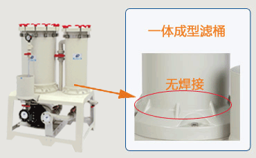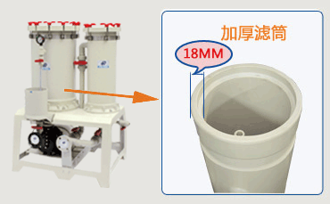 杰凱過濾機(jī)濾筒是采用PP材質(zhì)的加厚濾筒,不僅材質(zhì)好、耐腐蝕;而且濾桶桶壁更厚,同型號的電鍍過濾機(jī)耐壓能力提高了1-2公斤。用杰凱過濾機(jī)不用擔(dān)心因抗壓力差損壞過濾機(jī)。